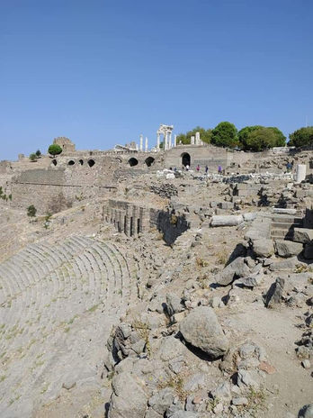 Türkiye'nin en etkileyici arkeolojik alanlarından biri olan Bergama'nın akropolü, ilçe merkezinin kuzeydoğusundaki bir tepe üzerinde dramatik bir şekilde yer almaktadır. Yukarı ve aşağı şehirlere dağılmış irili ufaklı kalıntıların bulunduğu bu antik yerleşimde görülecek çok şey var. Bunların başında Trajan Tapınağı, baş döndürücü 10.000 kişilik Helenistik tiyatro, Zeus Sunağı (ne yazık ki muhteşem frizinden yoksun, şu anda Berlin'de bulunuyor) ve Z Binası'nın ilginç mozaik zeminleri geliyor. Siteye erişmenin iki yolu vardır. Üst otoparka gidebilir veya bunun yerine Akropol Caddesi üzerindeki tabelaları takip ederek Bergama Akropolis Teleferiğinin alt istasyonuna ulaşabilirsiniz. Burada ücretli otopark da var. Teleferik yolculuğu beş dakika sürüyor. Bergama Akropolü gerçekten nefes kesicidir. Arkeoloji tutkunlarının mutlaka ziyaret etmesi gereken bir yer. Bu alanda esas olarak üç seviye bulunmaktadır. Alt Akropolis Seviyesi, Orta Akropolis Seviyesi ve Yukarı Akropolis Seviyesi.